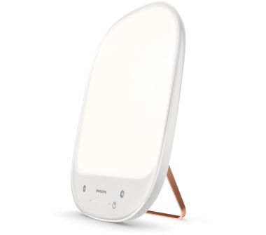 Du kan købe apparater som det til højre her, du stiller på dit skrivebord. Et par timer om dagen skinner det med kraftigt lys ind i hovedet på dig, mens du udfører dit arbejde. Et par timers lys om dagen øger dit glædesniveau betragteligt.